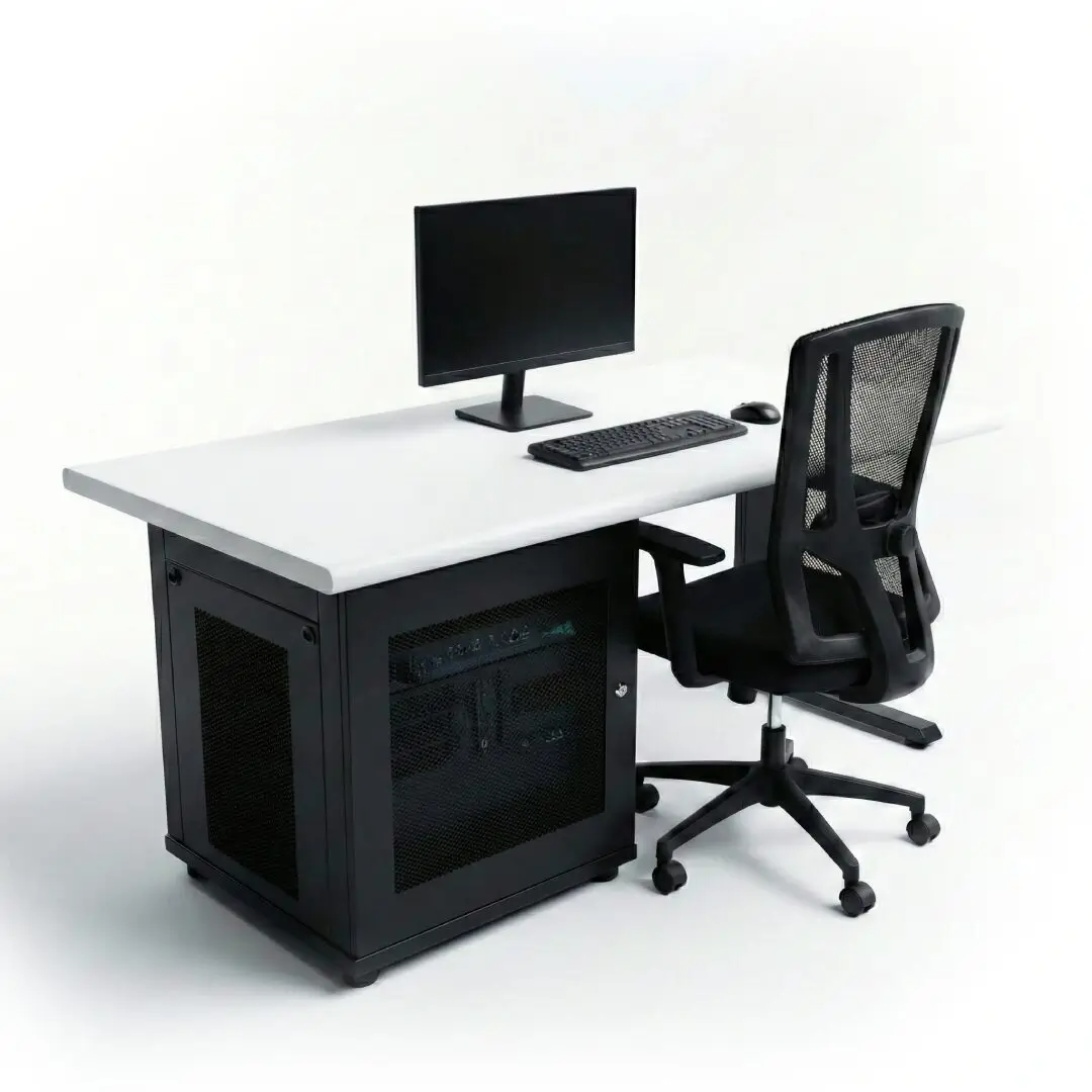 Estación de trabajo equipada con computadora, monitor y radio. Permite controlar escenarios, monitorear alumnos, registrar desempeño, gestionar lecciones y realizar diagnósticos del sistema integral.